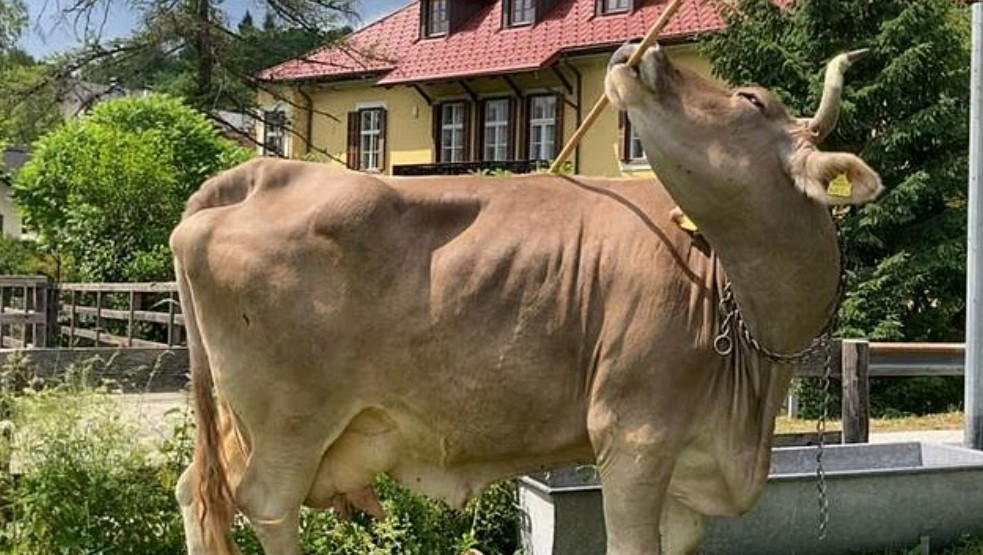 Речь идет о корове бурой швицкой породы по кличке Вероника, которая живет на ферме в австрийской деревне Каринтия. Животное удивило специалистов тем, что научилось чесать спину с помощью палочки. Кроме того, по словам владельца, корова способна узнавать голоса членов семьи и реагировать на зов.