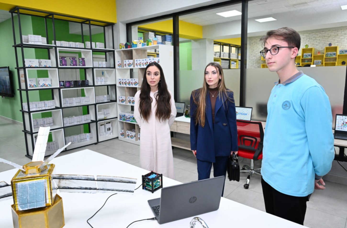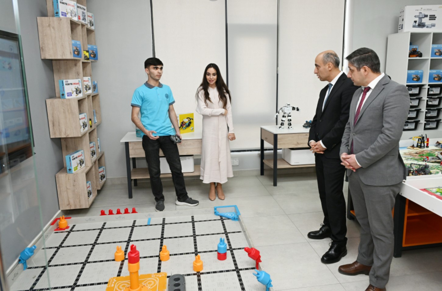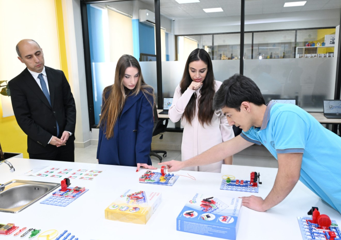 Лейла Алиева и Алена Алиева посетили центр STEAM, действующий в Гянджинском лицее с углублённым изучением физики, математики и информатики и полной средней школе №37 города Гянджа.