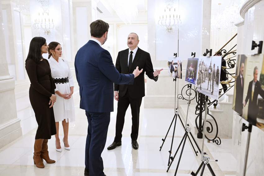 На площади, где были подняты государственные флаги двух стран, в честь вице-президента США был выстроен почётный караул. Джеймса Дэвида Вэнса встретил президент Азербайджана Ильхам Алиев.