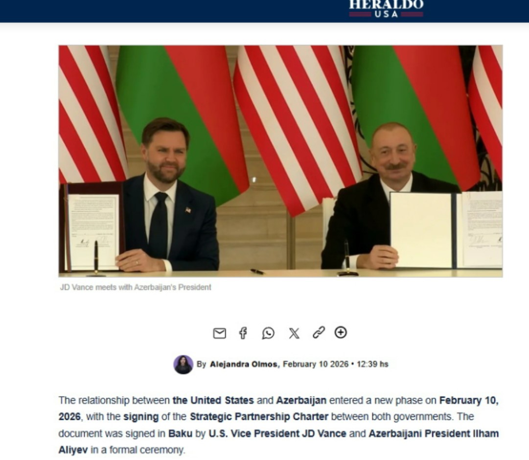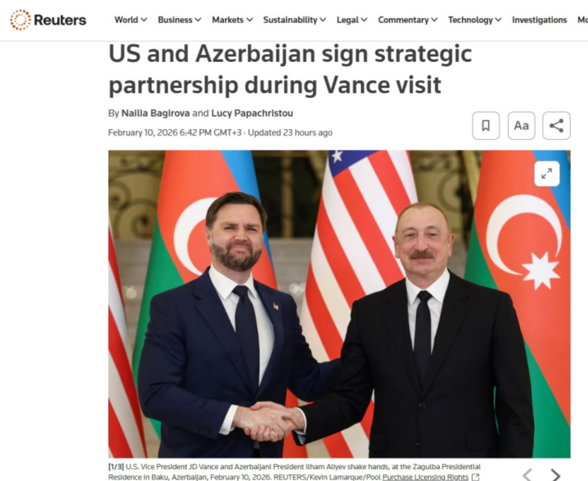 В опубликованной агентством Reuters статье под заголовком «США и Азербайджан подписали соглашение о стратегическом партнерстве в ходе визита Вэнса» сообщается, что президент Азербайджана Ильхам Алиев в ходе совместного заявления для прессы заявил о вступлении отношений между США и Азербайджаном в совершенно новый этап. Согласно публикации, Вэнс сообщил, что США направят суда для обеспечения охраны территориальных вод Азербайджана. Подчеркивается, что Хартия впервые была представлена в августе в Вашингтоне в ходе переговоров между президентом Ильхамом Алиевым и президентом Дональдом Трампом.