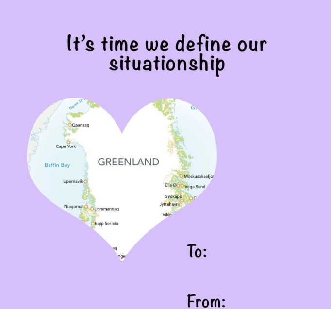 Белый дом опубликовал валентинку c изображением Гренландии и призвал остров «определиться с отношениями». Соответствующая публикация появилась в социальной сети X.