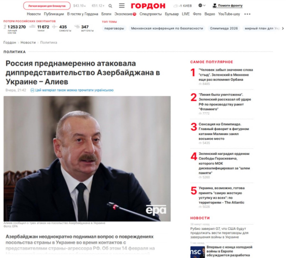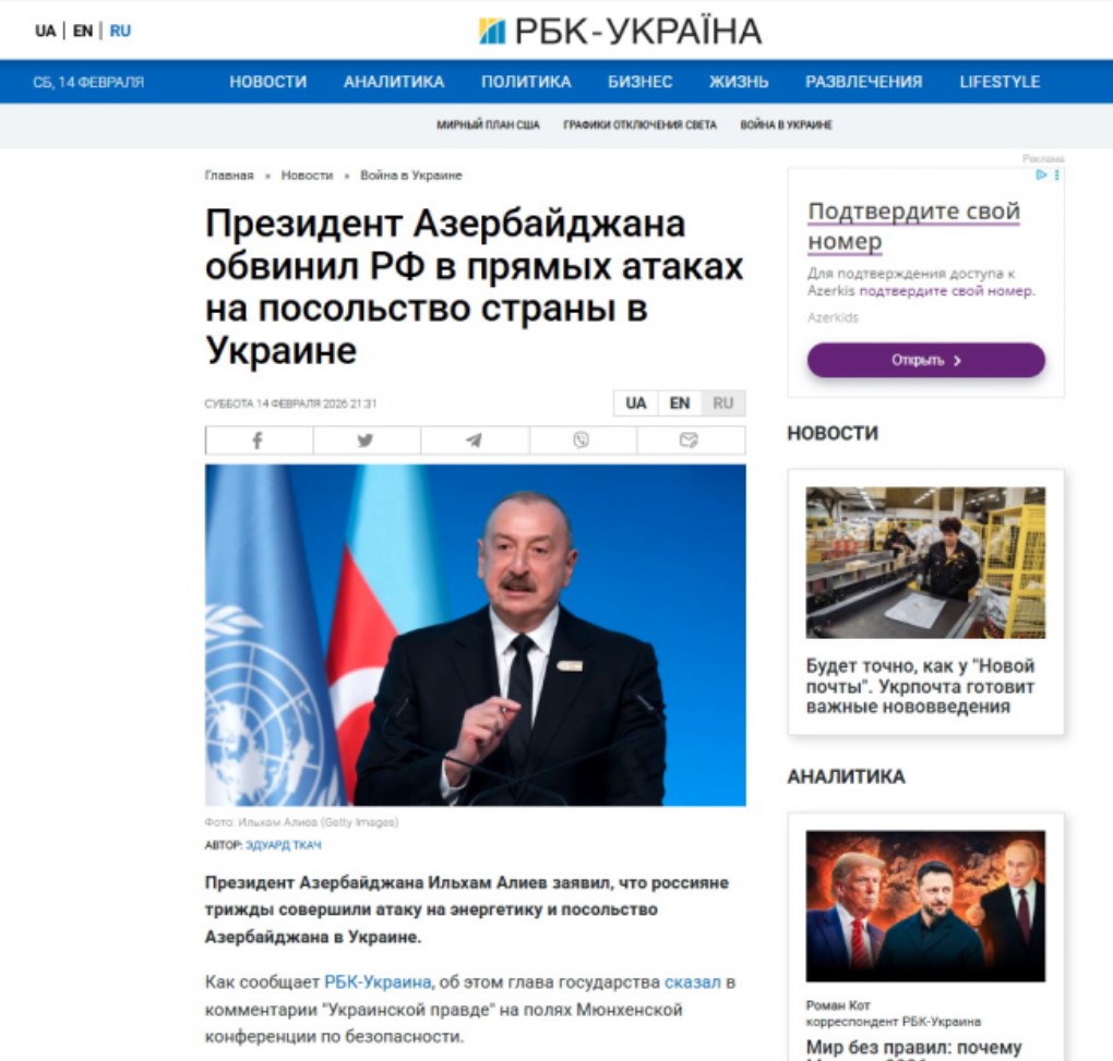 В публикациях также со ссылкой на заявление главы нашего государства пишется, что в Украине атакам подверглась не только энергетическая инфраструктура Азербайджана. В то же время посольство Азербайджана в Украине трижды становилось объектом нападений.