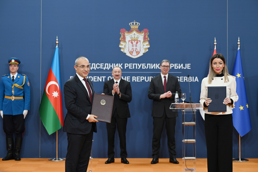 «Соглашением между правительством Азербайджана и правительством Республики Сербия о проектировании, строительстве газотурбинной электростанции в Республике Сербия и управлении ею» обменялись министр экономики Азербайджана Микаил Джаббаров и министр горнодобывающей промышленности и энергетики Сербии Дубравка Джедович.