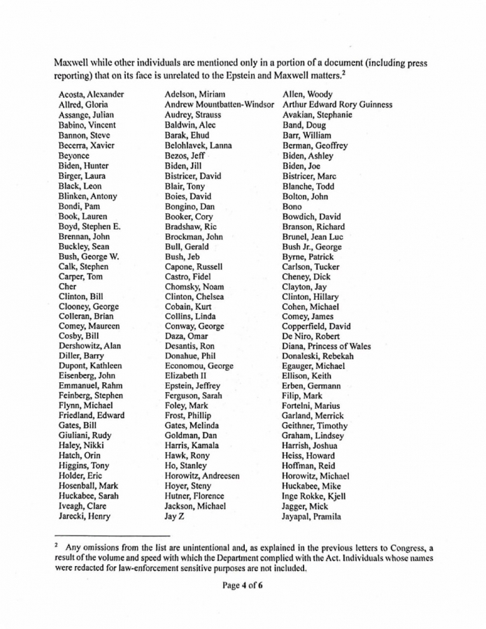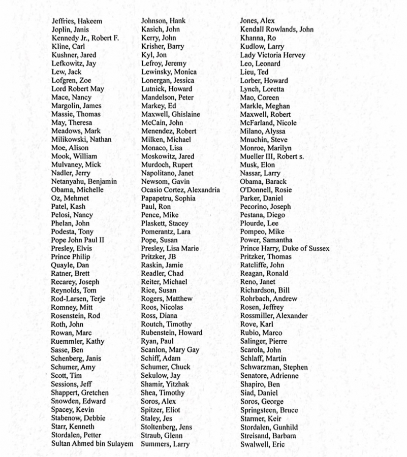 Уточняется, что имена в списке фигурируют «в широком разнообразии контекстов»: от прямой переписки с Эпштейном или его подельницей Гислейн Максвелл до упоминаний в документах, не связанных напрямую с преступной деятельностью.