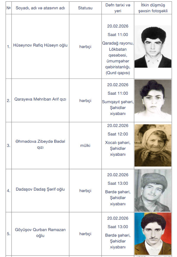 Об этом говорится в информации Государственной комиссии по делам военнопленных, пропавших без вести и заложников, касающейся церемоний захоронения пропавших без вести шехидов.