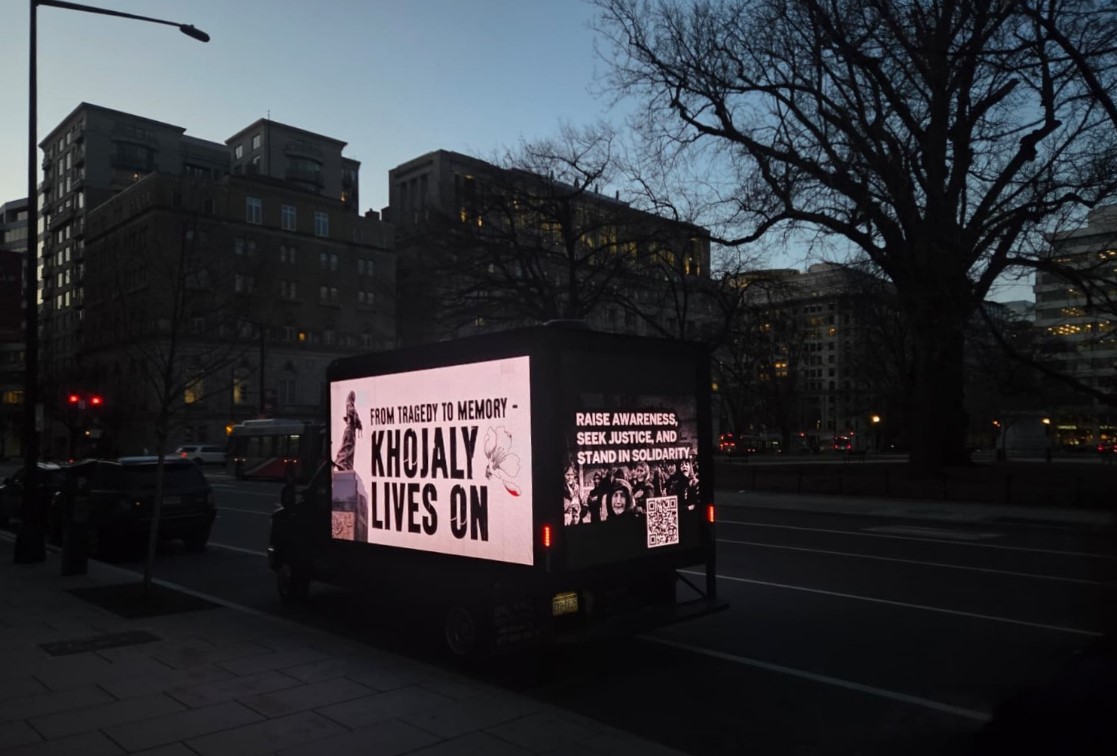 По центральным улицам города передвигались автомобили с LED-экранами, на которых размещалась информация о событиях 26 февраля 1992 года. Колонна проехала мимо Капитолия, Белого дома, Государственного департамента США и Пентагона, привлекая внимание общественности к трагедии.