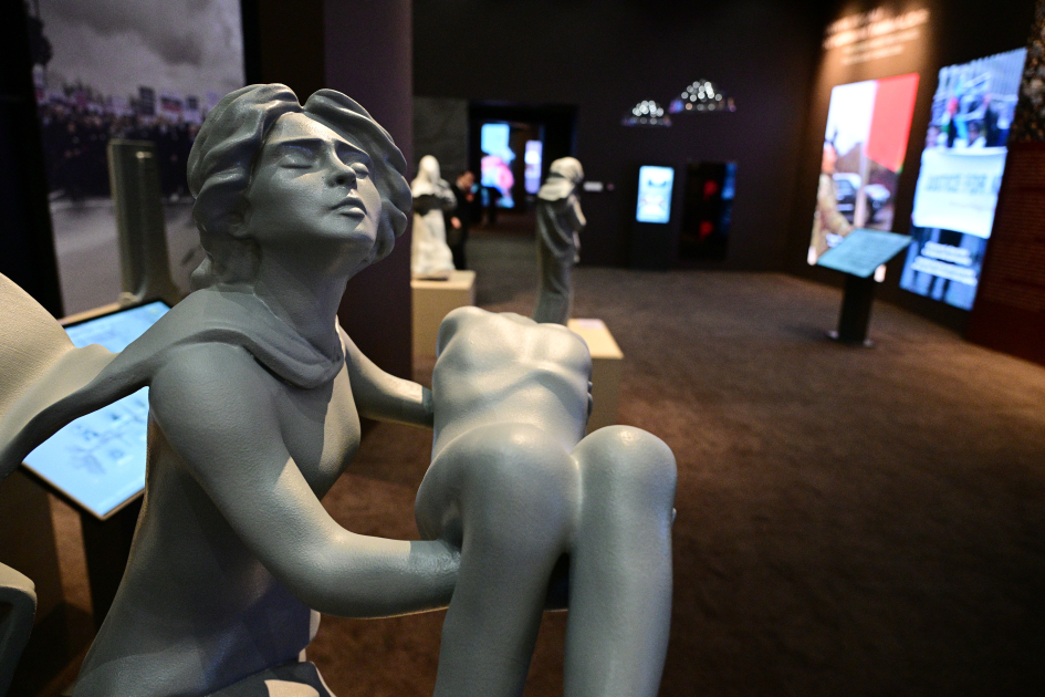 Президент Азербайджана Ильхам Алиев, первая леди Мехрибан Алиева и члены его семьи приняли участие в открытии в городе Ходжалы Мемориала жертвам Ходжалинского геноцида.