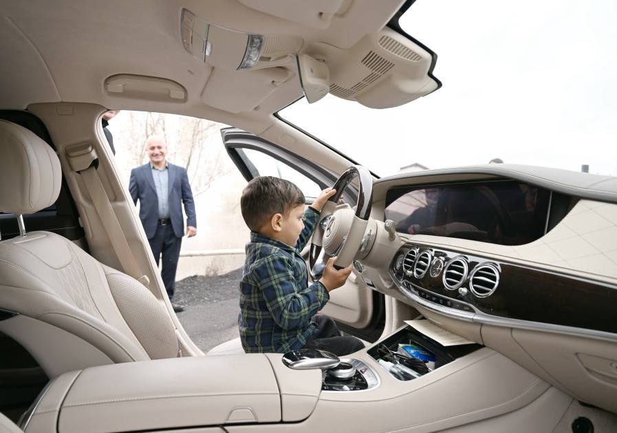 Во время визита глава государства позволил юному жителю Ханобы сесть за руль своего автомобиля.