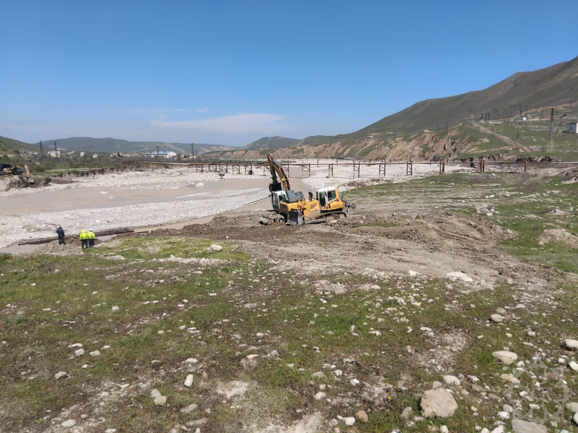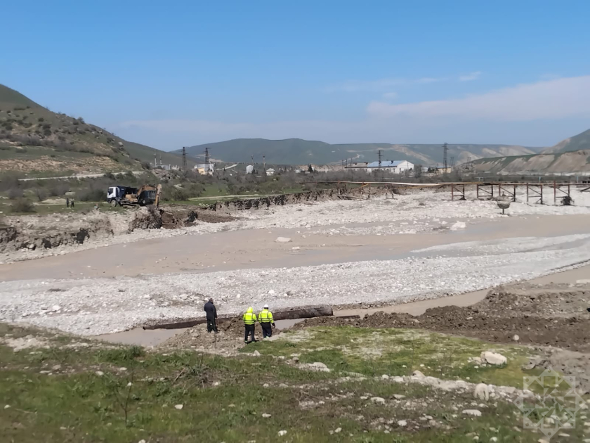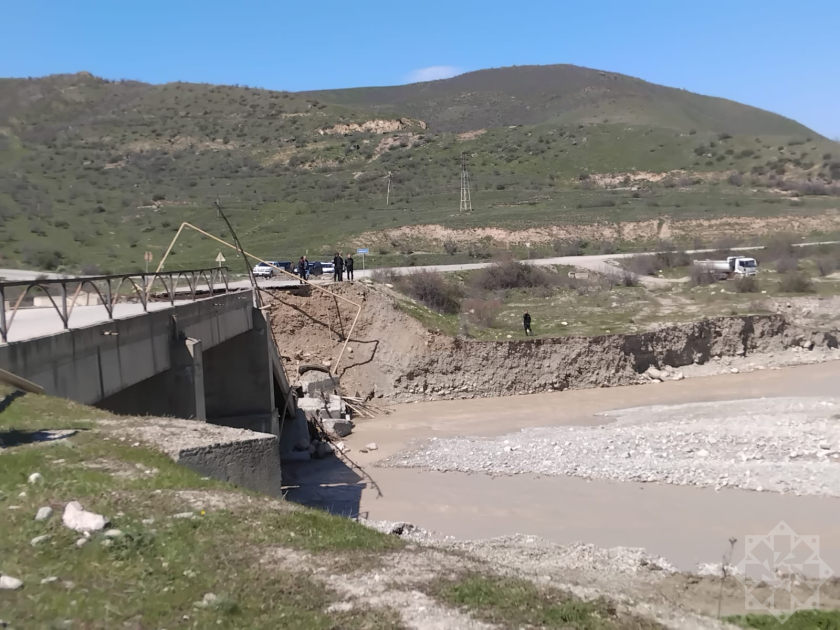 В Сиязане на автомобильной дороге Сиязан–Машриф в результате сильного паводка разрушен мост, ведутся работы по строительству временной альтернативной дороги.