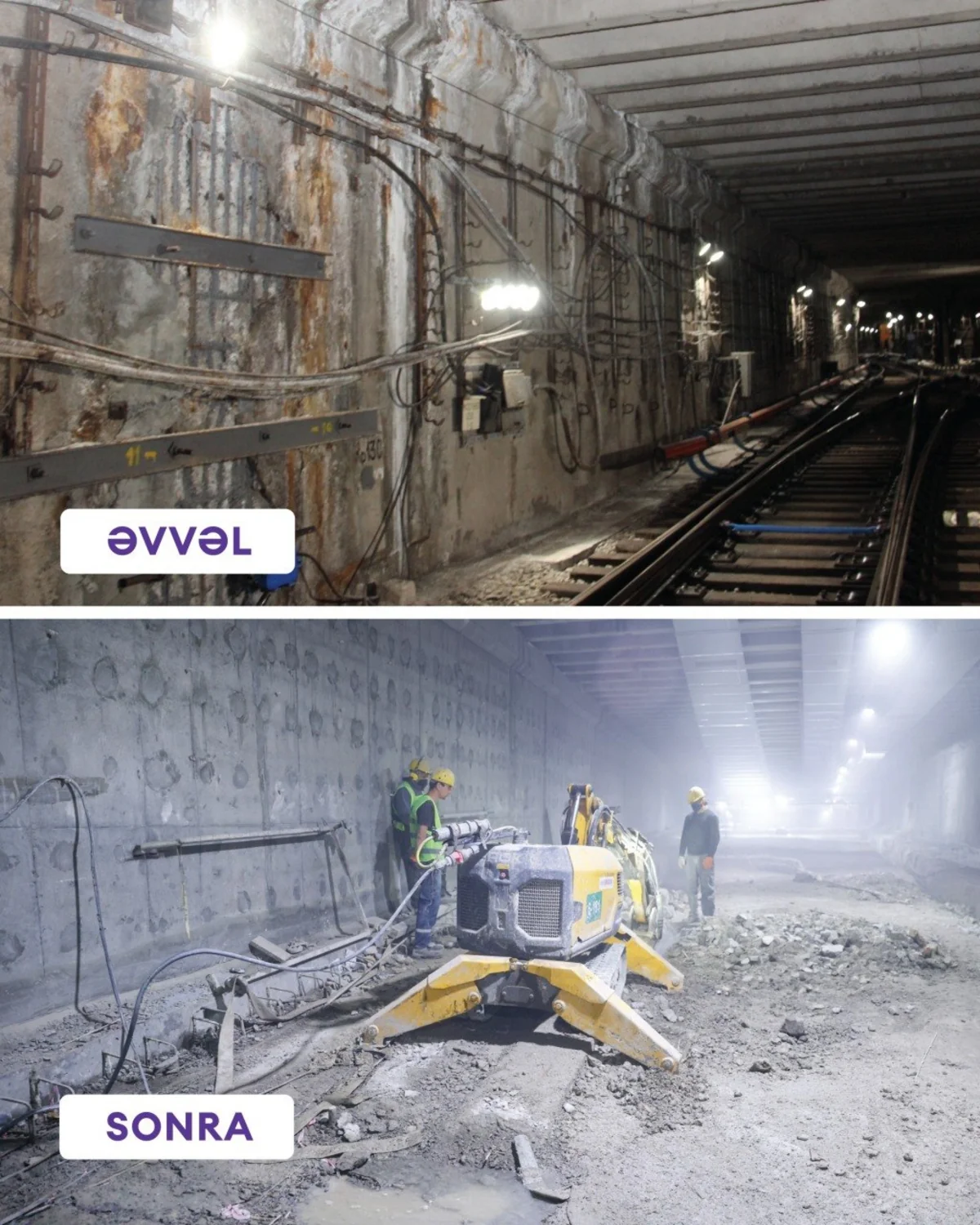 В ЗАО «Бакинский метрополитен» продолжаются капитальный ремонт и реконструкция тупикового пути на станции «Ахмедлы» («Ази Асланов»).